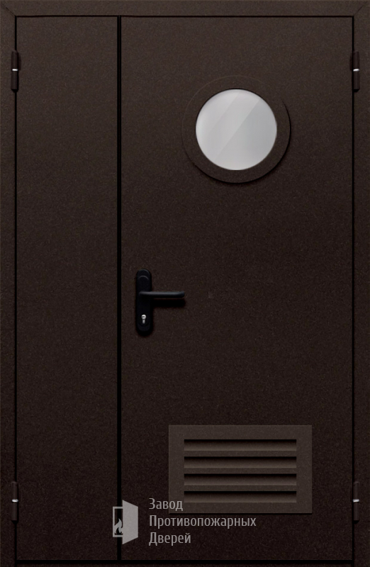 | Маркировка | Противопожарная Полуторная дверь с круглым стеклом ДПМ-02-EIW130 с решеткой |